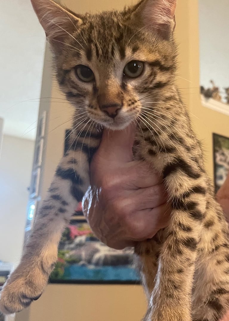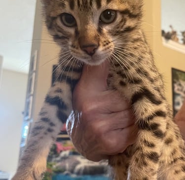 Our Savannah kitten is a joyful addition to our family, healthy and playful. Highly recommend USA Savannahs!